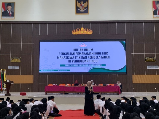 Kegiatan berlanjut dengan kuliah umum yang diisi oleh Dekan FTIK, Dr. Siti Annisah untuk memperkuat pemahaman mahasiswa mengenai kode etik dan tata tertib kehidupan kampus. Topik ini sangat penting agar mahasiswa tidak hanya berfokus pada pencapaian akademik, tetapi juga menjaga sikap, etika, dan moral sebagai bagian dari civitas akademika. Selain itu, mahasiswa juga mendapatkan arahan terkait strategi pembelajaran efektif di perguruan tinggi yang berbeda dengan pola belajar di sekolah menengah.