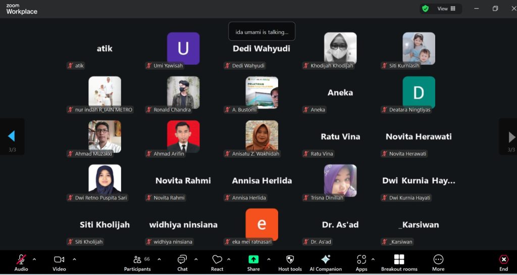 Sambutan selanjutnya disampaikan oleh Rektor UIN Jurai Siwo Lampung, Prof. Dr. Ida Umami, M.Pd., Kons., yang menegaskan bahwa peran dosen saat ini tidak hanya sebagai pengajar, tetapi juga sebagai pendamping sekaligus mitra belajar mahasiswa. Ia juga menyampaikan bahwa kegiatan distribusi mata kuliah ini menjadi momentum evaluasi sekaligus mempererat kebersamaan dan kekeluargaan di lingkungan fakultas.